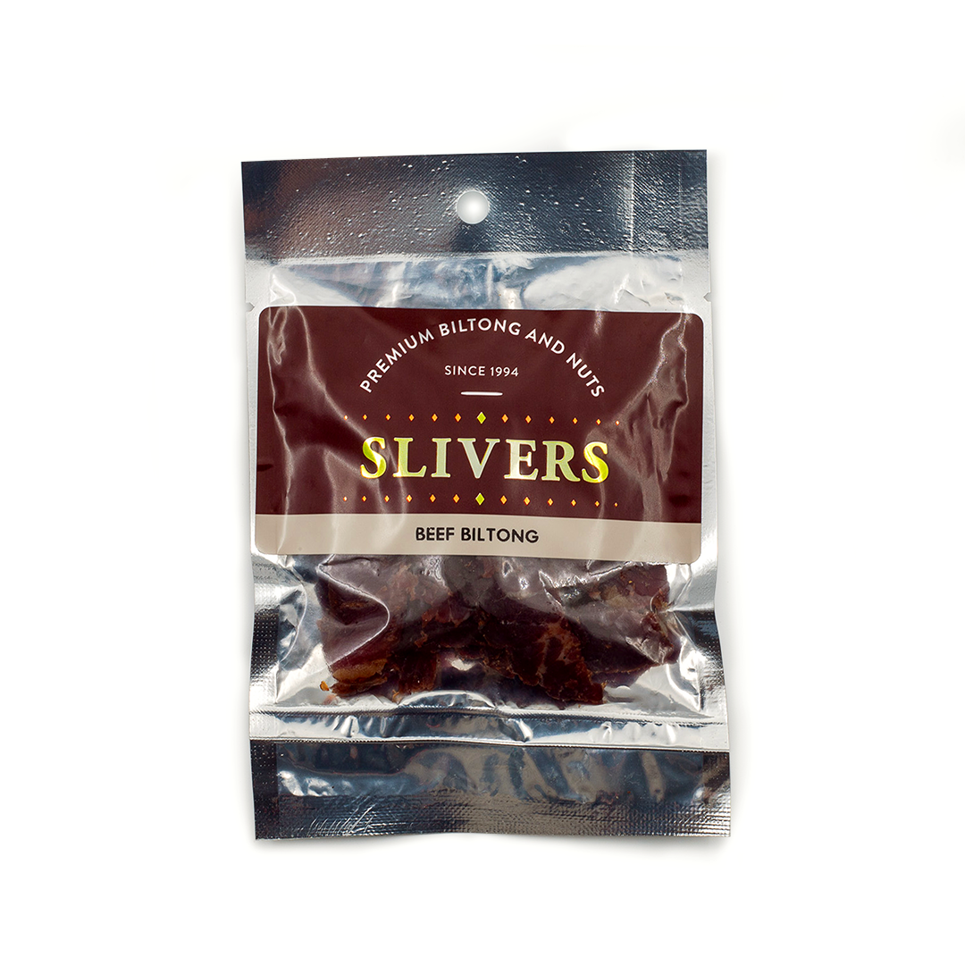 Image shows a packet of beef biltong