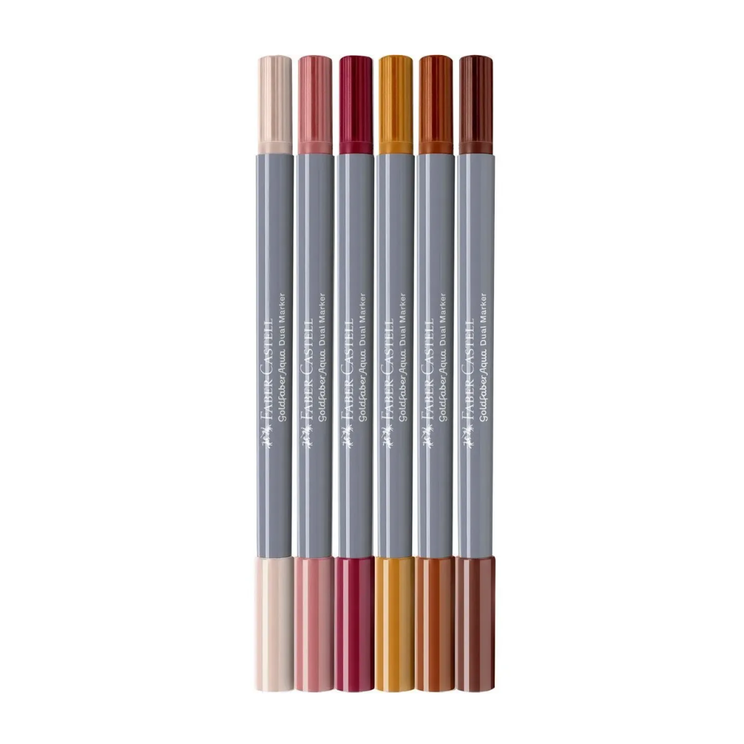 Image shows a set of 6 Faber-Castell dual markers (bright colors)